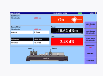 除了保持之前型號使用硬鍵和旋鈕的直觀可操作性之外,MT9085 已升級為 8 英寸彩色 LCD 寬觸摸屏。快速確認光纖傳輸路徑使光纖可視器功能進入下一階段。
