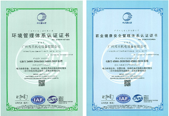 2025年09月5日,廣州邦貝機電設(shè)備有限公司喜獲廣東中之鑒認證有限公司頒發(fā)的《環(huán)境管理體系認證證書》和《職業(yè)健康安全管理體系認證證書》,并得到IAF國際互認和CNAS中國認可。而環(huán)境管理體系符合GB/T24001-2016/ISO14001:2015標準,職業(yè)健康安全管理體系符合GB/T45001-2020/ISO45001:2018標準。上述兩體系均適合電力檢檢修設(shè)備、儀器儀表、檢修機具的銷售和售后服務(wù)及相關(guān)管理活動。