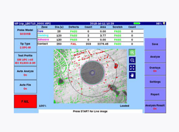 光纖端面檢查使用外部光纖顯微鏡選件(單獨出售)在 MT9085 主機屏幕上顯示光纖連接器端面的狀態(tài)。由于端面上的污垢和劃痕不僅對光纖電路傳輸質(zhì)量有很大的影響,而且阻礙了精確的光脈沖測試以及光損耗及光功率測量,因此光纖端面檢查十分重要。